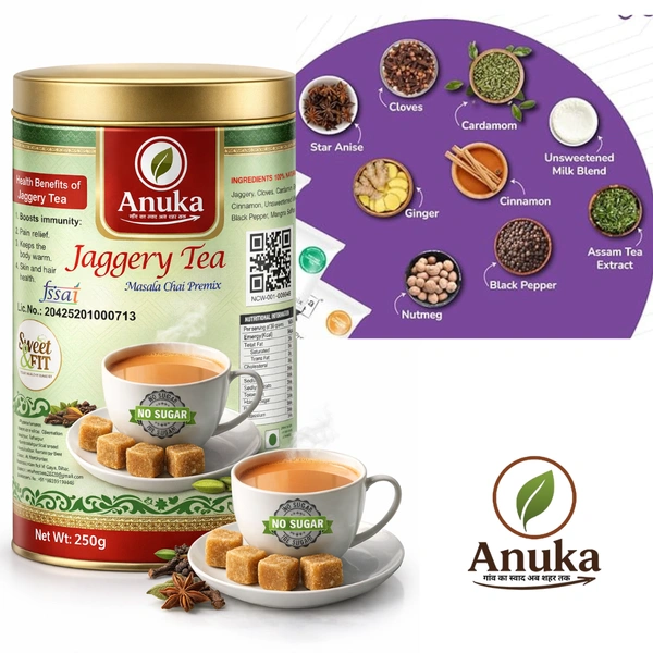 Anuka Jaggery Tea 250g | Gud Chai Powder | No Added Sugar | Natural & Healthy Tea